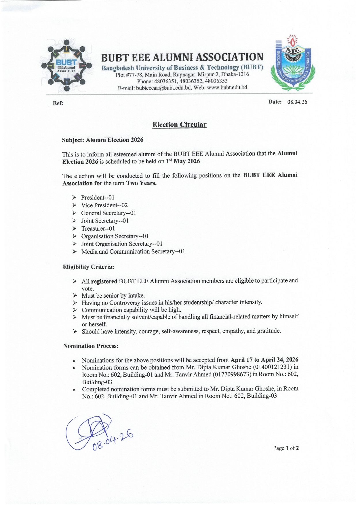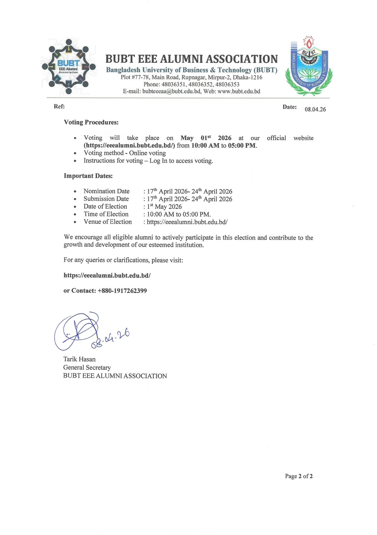 BUBT EEE Alumni Association Election 2026 Announcement